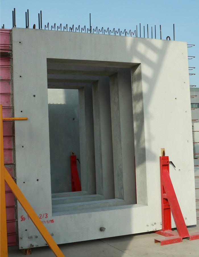 公司設有PC車間、模具車間、中心實驗室、全封閉式混凝土綠色環(huán)保攪拌站。其中,PC車間擁有4條高效節(jié)能生產線,包括墻板自動化生產線、板類構件自動化生產線、固定臺模、全自動化鋼筋加工生產線。
